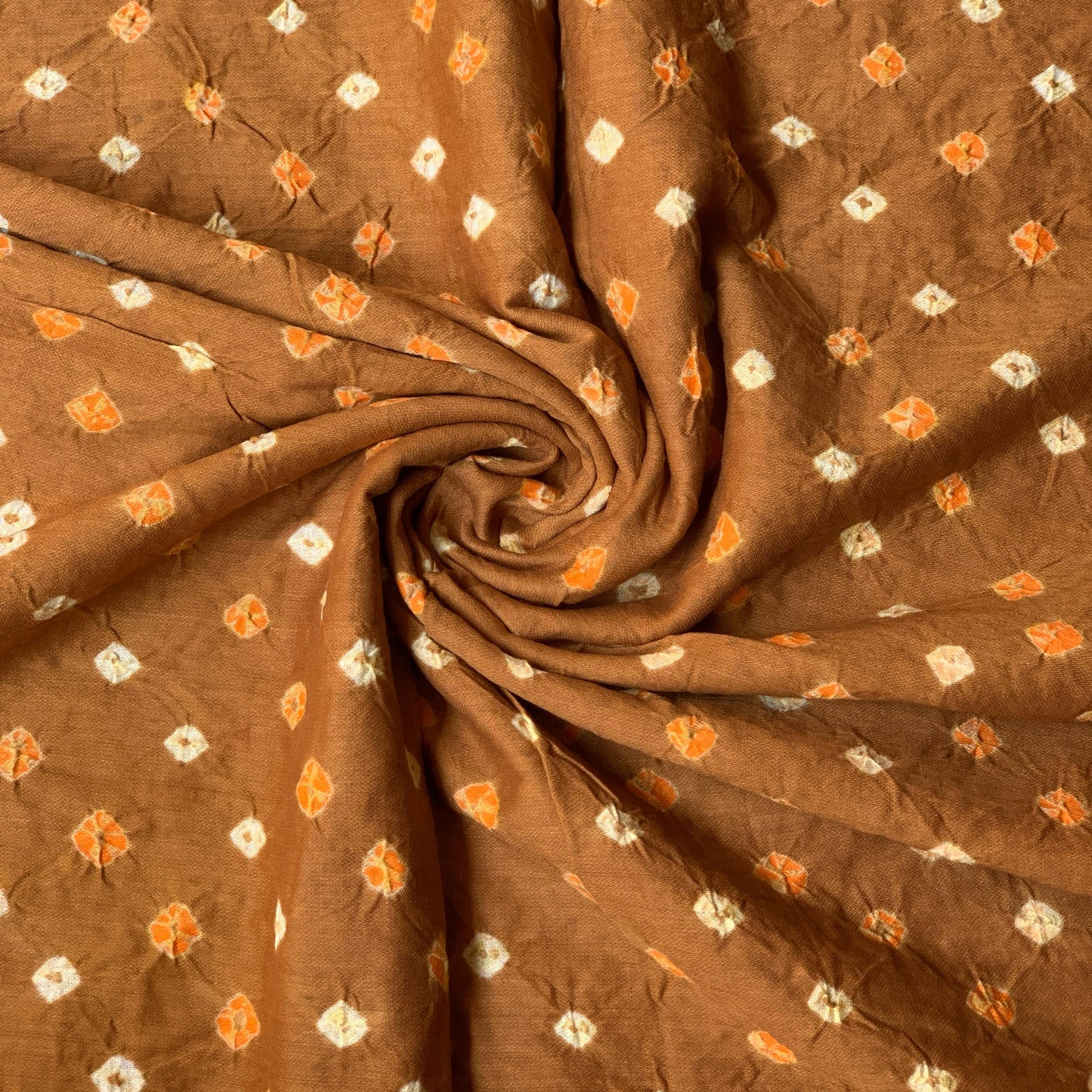(Pre-cut 1.20+1.20 Meter)Pure Soft Cotton Satin Finish Tie-Dye Bandhani Fabric