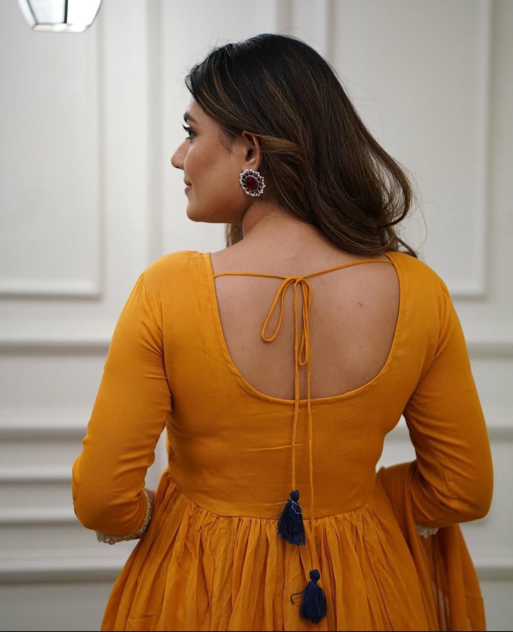 Pure Cotton Anarkali Suit Set With Beautiful Embroidery Work