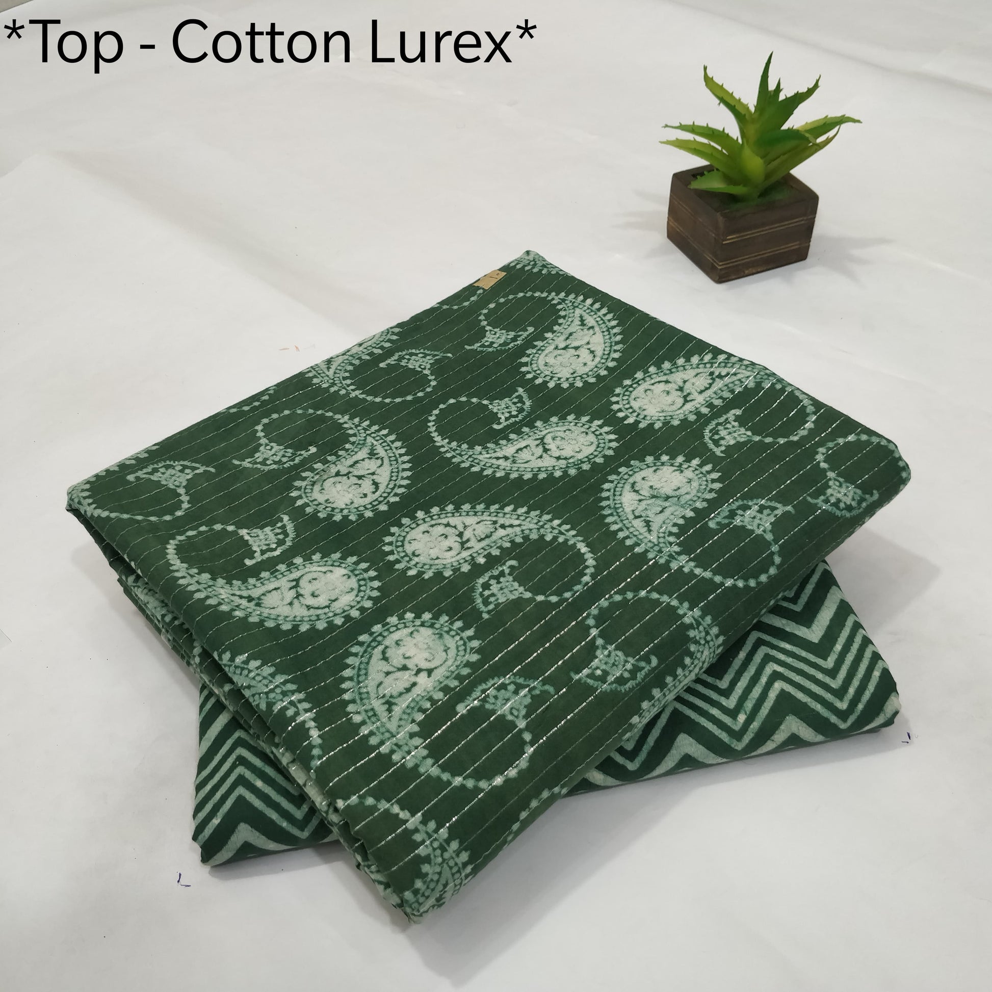 Pure Cotton Lurex Handblock Printed 2PC Top-Bottom Set